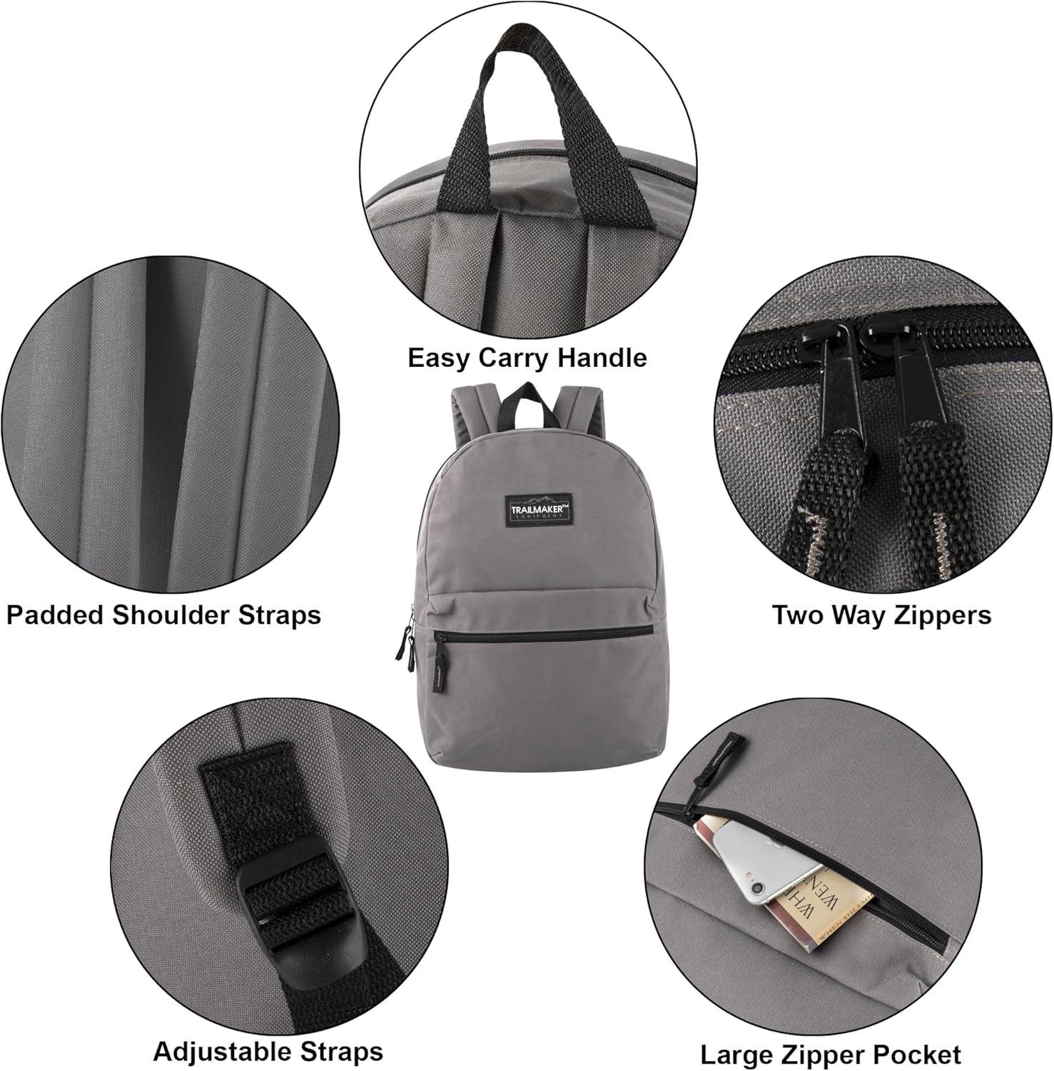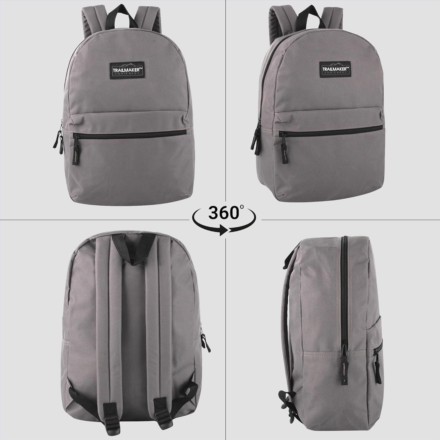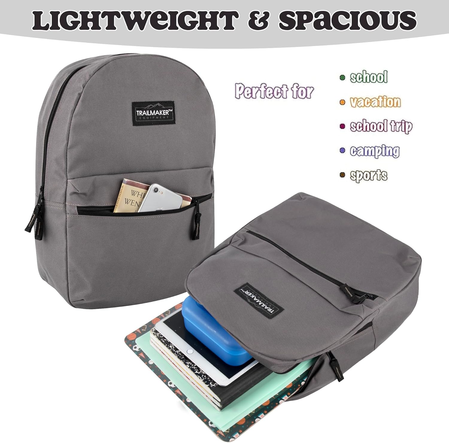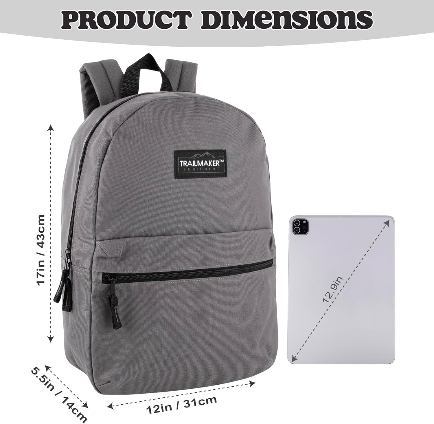Trail maker Classic 17 inch Backpacks with Adjustable Padded Straps | School Backpacks for Girls, Boys (Grey)